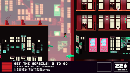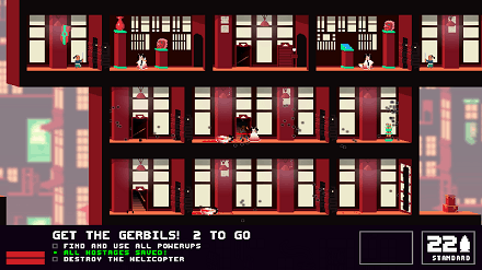 Papildomos užduotis šiame žaidime paprastos ir pakankamai aiškios: jums reikia nušauti tam tikrą dilerių kiekį, nepatirti žalos, įveikti lygį per tam tikrą laiko tarpą ar pasiekti tam tikrą tašką. Kad nebūtų sunku, į pagalbą ateina įvairus veikėjo arsenalo patobulinimai (Powerups), kurie suteikia žaidėjui sprogstančias kulkas ir automatinį robotą kulkosvaidį (ang. turret). Šie patobulinimai pasitaiko atsitiktine tvarka todėl, kad kiekvieną kartą kartodami lygį jūs gautumėte vis kitokių.