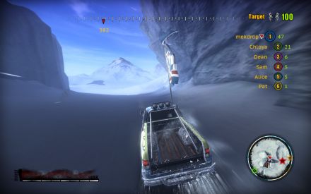 Kitas „pasiskolintas“ elementas – „Nitro“. Tiesa, „Insane 2“ žaidime taip jis tiesiogiai neįvardijamas, o vadinama tiesiog „Boost“ vardu (lietuviškai – „padidinimas“). Viena vertus, dėl šio elemento „Insane 2“ atrodo labai šiuolaikiškas žaidimas (juk beveik visos arkadinės lenktynės tokį turi!), bet, kita vertus, kai gatvių lenktynėse arba lenktynėse su superautomobiliais tai naudojama – tai yra viena, bet kai naudojama su 4×4 transporto priemonėmis ir nesvarbu, ar išsigalvotomis ar ne, tai atrodo visai kitaip. Suprantu, kad į bet kokią transporto priemonę galima sukišti bet ką, bet bent šiuo atveju tai neatrodo labai logiška… nors, kita vertus, juk žaidimo pavadinimas sako, kad viską, ką pamatysime žaidime bus kuo tikriausia beprotybė…