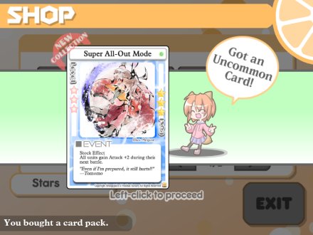 Aš nieko prieš neturiu prieš virtualias parduotuves, bet daryti taip, kad žaidėjas turėtų priežasčių juose lankyti, manau, kad tikrai yra blogai. Supraskite mane teisingai! Nesu aš nusistatęs prieš virtualias parduotuves, bet jos turi veikti tinkamai! Dabar, kas blogiausia, čia galima leisti savo uždirbtus virtualius taškus, naujoms kortelėms, kurias galima panaudoti žaidimo metu, ar veikėjams, kurie turi skirtingas atakos, gynybos bei pabėgimo reikšmes. Nebūtų tai blogai, jei ši galimybė nebūtų labai jau rekomenduotina, nes tolimesnių žaidimo lygių tiesiog be pirkinių bus praktiškai neįmanoma pereiti! Nesuprantu, kodėl buvo pasirinktas toks kelias! Juk galėjo padaryti taip, kad perki ten už tikrus eurus. Išleidi kokius 300 (kaip kokiame „MU Online“) ir esi laimingas! 1,2,3… ir jau pereitas visas žaidimas!!! O dabar vis reikia knistis peržaidžiant tuos pačius lygius po bent kelis kartus, kad pavyktų užsidirbti bent kažkiek tos reikalingos valiutos!