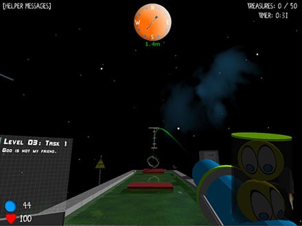 Galiausiai – garsas. Turbūt geriau skambėtų kurčiųjų choras. Labai prasta įgarsinimo kokybė ir ji labai greitai įgrysta. Patys kūrėjai, jei klausa neapgauna, įgarsino tik kamuolių atšokimo garsus ir kompiuterinį pranešėją. Kiti garso efektai pasiskolinti iš nemokamų garsų tinklapių. Nėra skirtumo tarp veikėjo ėjimo ir bėgimo – žingsniai nepaspartėja. Didžią žaidimo dalį praleidau tyloje. Mat muziką reikia įjungti dešiniu pelės klavišo paspaudimu. Ir melodija groja tarp 30 sekundžių ir vienos minutės. Ir ji baigiasi. Nėra begalinio grojimo, kurio tikėjausi, ji tiesiog sustoja. Yra 8 skirtingos melodijos, kurios neturi nieko bendro su žaidimo zonomis. Tai buvo vieni iš blogiausių garso efektų, kuriuos esu kada nors girdėjęs.