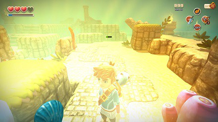 Kalbant apie žaidimo eigą – „Oceanhorn“ labai primena tokią seną žaidimų serija apie žaliai apsirengusį Elfą, vis gelbėjanti nuolat pagrobiamą princesę ir renkantį išminties trikampio dalis. Panašumo daug, skiriasi tik veiksmo vieta ir žaidimo istorija, visa kita netgi labai pažįstama: vaikas, daužantis puodus, pjaunantis žolę dėl pinigų, pakeliantis virš galvos rastus daiktus ir t.t. Žaidimas taip pat pateikia panašių galvosūkių, kurių metu jūs dažniausiai stumdysite dėžes ir spausite mygtukus, atveriančius kelią į tolesnius požemius.