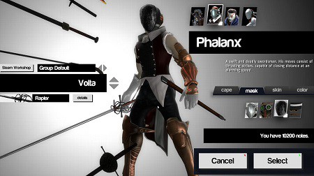 Nors žaidime tikrai neblogų variacijų siūlo trys skirtingos kovos pozos, veikėjų viso – vos keturi. Tai tikrai žemiau skurdo ribos vertinant dvikovų žaidimus: jei jau akcentuoji vien kovą, tuomet malonėk pasirūpinti gausiu pasirinkimu, nes stebėti klonų kovas yra gana nyku. Tiesa, kūrėjai kompensuoja vos keturių personažų buvimą perdėtai dideliu jų išorės detalių pasirinkimu bei kardų išore, kurią galima juntamai pakeisti. Tik čia yra viena žaidime per daug neakcentuojama problema: tam, jog gautum kad ir tokius niekinius kosmetinius patobulinimus savo personažui ar jo kardui, reikės daug kartų laimėti dvikovą su priešininkais bei tą daryti nustatytuose serveriuose, o ne bet kur. Na, gal kam tai ir nepasirodys perdėm didele problema, tačiau šių detalių nežinant žaisti tampa gana sunku – žaidi, o nejauti net menkiausio progreso, t.y. negauni net tų ir šiaip sunkiai kaupiamų taškų savo kosmetiniams patobulinimams.