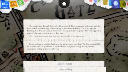 Iš tiesų, pradžioje galvojau, kad tai bus kažkokio įprasto stalo žaidimo adaptacija (pavyzdžiui, „Witcher: the Board Game“, „Talisman“, „Space Hulk“, taip toliau ir panašiai), bet kuo ilgiau žaidžiau, tuo kilo didesnis įtarimas, jog čia ne įprastas žaidimas, o mano taip mylima „knygų – žaidimų“ („gamebooks“) serijos dalis. Žinot kodėl? Ne? Ogi, todėl, kad žaidime esantys pasirinkimai BAUDŽIA. Štai, vienu metu gali itin gerai sektis, tačiau vienas netinkamas pasirinkimas ir visas mūsų surinktas turtas, ginklai, maisto daviniai ir kiti dalykai pradingsta, o gerai prakutęs herojus virsta paprastu valkata.