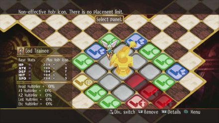 Hm, atskira pastraipa, manau, vertėtų išskirti vieną žaidimo aspektą, kurį, bent jau aš, būčiau linkęs vertinti gana neigiamai, tai – divinigrama arba toks tinklas, kuriame galima bus tobulintis Renya bei jo angelus. Iš karto pasakysiu, kad Renya automatiškai tobulėja kylant bendram jo leveliui (o kylant papildomam leveliui nukopijuotuose pasauliuose ar požemiuose jis papildomai tobulėja vien to pasaulio rėmuose), dar jo tobulėjimą lemia nuolat tobulinami ginklai bei daiktai ir galiausiai – divinigrama… Tiesą pasakius per savo gyvenimėlį spėjau prisižiūrėti pačių įvairiausių veikėjų tobulėjimo tinklų (pradedant „Final Fantasy X“ ir baigiant tipiniais RPG), bet „The Guided Fate Paradox“ vienareikšmiškai pretenduoja į vienos komplikuočiausių sistemų titulą. Iš esmės čia viename tinkle reikės užsiimti trejopa veikla: atrakinti uždarytas plyteles, kurios kartais išmes mums kokį nors daiktą, tuomet aktyvuoti tam tikrus šventorius, apie juos išdėti plyteles, kurios didina ataką, gynybą ir kt. ir galiausiai ant tų atakos, gynybos ar kitokių plytelių uždėti dieviškąjį artefaktą. Visas šis procesas, pageidautina, turi būti atliktas taip, kad tą artefaktą stiprintų šventorius, o tą daryti jis gali būtent grandininiu būdu per visas tas prieš tai žaidėjo išdėliotas plyteles. Šiaip, viskas lyg ir suprantama, bet kiek būtent šis procesas sustiprina herojų ar kur konkrečiai gauti papildomų dieviškųjų artefaktų – neaišku. Taip pat viską apsunkina tai, kad beveik viską, ką darai savo herojui, turi padaryti ir angelams, tad būna pasimeti, ar būti gobšam ir tobulinti save, ar skirti dėmesio ir angelų tinklams, nors tada susimąstai, kiek to reikia tam, kad jie bent jau išsilaikytų kovos lauke (kas dažniausiai jiems ir taip puikiai sekasi, mat dirbtinio intelekto atžvilgiu jiems jokių priekaištų negali būti, ypač kai dar pats gali skirti įvairias komandas lydinčiajam angelui).