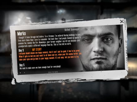 Svarbiausia, kad visi šie sprendimai nebus paprasti, kaip eiliniame RPG žaidime, kur išvogę visą visą parduotuvę galime bevargo tuos daiktus parduoti pačiam parduotuvės savininkui. Ne, čia iš senos moters paėmęs vaistus vaikėjas jausis blogai, jį grauš kaltės jausmas, jis nuolat galvos kaip tai moteriai šiuo metu sekasi, ar ji vis da gyva. Bet juk darome viską, kad tik išgyventume. Apskritai, nors vieni gali sakyt – ir, ko gero, tokia yra šio žaidimo esmė, ty, kaip karo metu išlaikyt humaniškumą ir nesužvėrėt, aš nuosirdžiai manau, kad daugelis veikėjų yra per daug ištižę. Turint omeny tai, kad daugelis jų yra ne pirmos jaunystės vyrai, ne moterys.