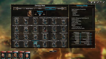 Apskritai, veikėjų tobulinimas vyksta trimis (magų atvejų keturiomis) pakopomis. Pirmiausiai mes turime pagrindinius jėgos, ištvermės, miklumo, vikrumo bei kitokius atributus. Nuo šių priklausys priklausys ne tik daroma žala, gyvybės ir astralinių taškų kiekis, ar bendra visos grupės jėga, leisianti panešti daugiau daiktų ir laisviau judėti mūšio metu, bet ir tai, kokius aktyvius (ir pasyvius) talentus galėsime išmokti.