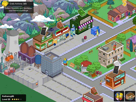 „The Simpsons: Tapped Out“ žaidžiamas panašiai kaip ir bet kuris kitas nemokamas socialinis žaidimas („Farmville“, „Cityville“, „Travian“) – paspaudžiat ant veikėjo pasirenkat darbą ir veikėjas jį atlieka per tam tikrą laiko tarpą, kurį galimą sutrumpinti naudojant spurgas, šio žaidimo valiuta, kuri gaunama mokant tikrus pinigus. Už spurgas nusipirksite kietesnių veikėjų, pažįstamų serijos vietų ir galėsite pilnai užpildyti kolekcijas.Bet koks būtų socialinis žaidimas be draugų pakvietimo, kuris žaidime įgyvendintas prastai, nes galima pakviesti tik tuos draugus, kurie turi EA „Origin“ vartotojo paskyra, jau geriau būtų naudojama integruotą „Facebook“ ar „Twitter“, kuriuos naudoja daugiau žmonių, tačiau man šis dalykas patinka, nes aš nesu socialiniu žaidimų gerbėjas ir man trukdo „Veidaknygėje“atsirandantys pakvietimai. Tad džiaugiuosi, kad kūrėjai taip padarė, nors pats ir neturiu „Origin“. Be išvardintų punktų žaidimas reikalauja interneto ryšio, kas bus problema „iPod Touch“ savininkams, jeigu jie norės žaidimą žaisti vietose, kur nėra „Wifi“ ryšio.