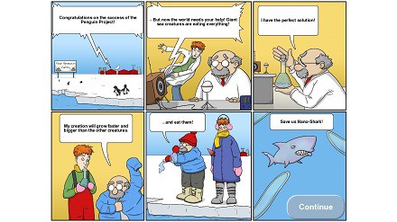 Kiekvienas iš jų savo kelią į jūros dominavimą pradeda įvairiais būdais: žuvelė iššoka iš kanalizacijos, delfinas pabėga iš zoologijos sodo, o ryklys išleidžiamas išsrėbti jų privirtos košės.