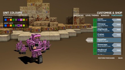 Kad jau prakalbau apie neonus, pirmiausiai reik paminėti bene smagiausią šio žaidimo vietą – karių ir žemėlapių (o gal geriau, „arenų“?), kuriose vyksta visas veiksmas, spalvų bei išvaizdos keitimą. Tiek kariams, tiek arenoms galima pakeisti jų bazinę spalvą ir (arba) ant viršaus uždėti tam tikrą „skiną“. Pasirinkimas yra ganėtinai įvairus: paprastus kvadratinius žmogeliukus galima paversti skeletais, kaubojais, riteriais, sportininkais ir t.t. Nenusileidžia ir arenų spalvų pasirinkimas: nuo paprastų pilkų blokų, iki actekiškų ar egiptietiškų statinių motyvų. Taigi, jei norisi turėti rožines ninzes, lakstančias po „Trono“ spalvom pulsuojantį žemėlapį – prašom. Norintiems dar didesnio išskirtinumo, žaidimas siūlo įsigyti keletą unikalių išvaizdų, už simbolinį euro mokestį.