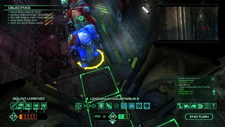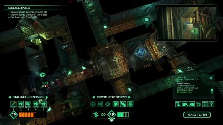 Nemaža įdomumo dalis slypi ir pačiose žaidimo taisyklėse. Iš pradžių tikėjausi sutikti kažką panašaus į patį „Warhammerį“ – keliasdešimt lapų taisyklių, apimančių visus ginklus, ėjimų, šaudymų ir snukių malimo principus. Dėkui Imperatoriui, nors čia esantis inventorius yra identiškas didžiajam broliui, taisyklės yra labai paprastos ir nesunkiai įsisavinamos. Visi terminatorių veiksmai yra ribojami keturių veiksmo taškų („action points“) Šie taškai naudojami judėjimui, pasisukimui į šoną (90 laipsnių pasisukimas atima 1 tašką), šaudymui, (šaudyti galima tik atsisukus į priešą, su sąlyga, kad niekas neužstoja vaizdo), užstrigusių ginklų sutvarkymui, ar komandoms. Taigi, jei pamatę iš nugaros atbėgantį priešą jį norėsime pašalinti, geriausiu atveju turėsime išleisti du veiksmų taškus (blogiausiu atveju galime išleisti visus, o priešas liks gyvas). Šalia paprastųjų taškų yra dar vieni „komandos“ taškai („command points“). Šie skiriasi tik tuo, kad galioja ne atskiram desantininkui, o visam būriui bendrai ir užsikrauna įvairiais kiekiais. Juos galima išleisti papildomiems veiksmams: komandoms, užstrigusio ginklo sutaisymui priešo ėjimo metu, tolimesniam keliui nukeliauti ir pan.